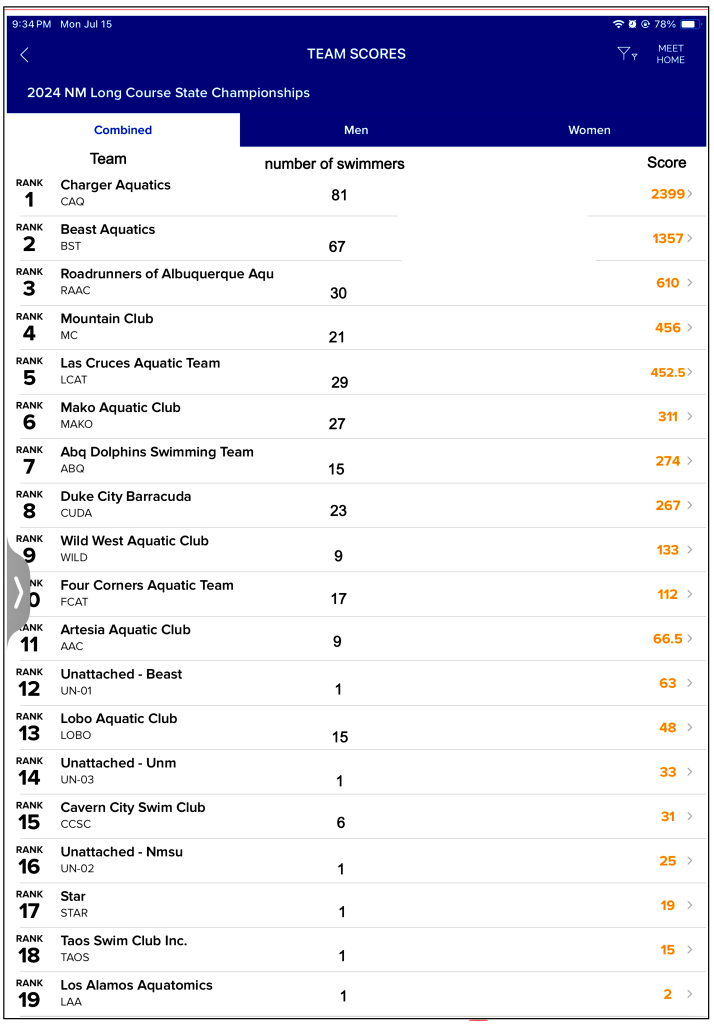 Mountain Club Placed 4th in NM Swimming 2024 Long Course Championships